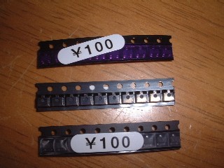 千石電商さんの2Fのカウンター前の棚にあった、表面実装型のNPN, PNP 型トランジスタを買ったのですが、型番を控えてくるのを忘れてしまいました。 10個で100円ということで、衝動買いしてしまった代物なのです。 (しかも合計100個も買っている、 お馬鹿な状況) |