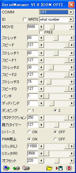 ・ 角度制御に必要な時間は0.6msec.程度ですが、内部PID制御があるため、4msec.(もうちょっと長い方が良いかも)以上に周期を設定した方がブルブルしない。