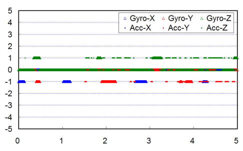 | 図C:ジャイロ(3軸;X=左右軸, Y=前後軸, Z=垂直軸) | 図D:加速度(3軸;X=左右軸, Y=前後軸, Z=垂直軸) |