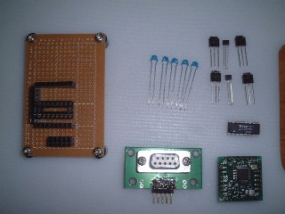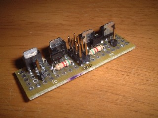 左の基板はOAKS8, EIA232C, COMポート用コネクタ を乗せてるだけです。 空きスペースに、FET, コンデンサ、写真にはないですが抵抗を配置予定です。