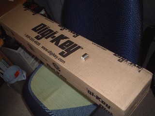 Digi-Key に注文していた IRF7317 100個です。 ダンボールがえらくデカイので、個数を間違えたか?って思いましたが、ちゃんと100個でした。 ダンボールの上にモータを乗せてみましたので、その大きさがわかっていただけると思います。 注文してから3日弱で届けられました。 アメリカからにしては、すっごく早いですね。 びっくりです。 カード支払いは怖いので、振込みにしましたが、専用用紙により振り込まないといけないので、銀行へ行かないといけませんが、2週間の猶予があるので、大丈夫でしょう。
