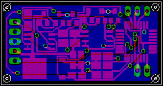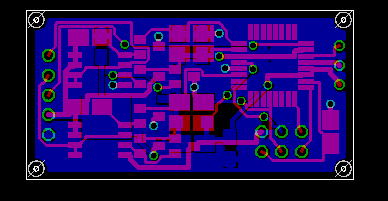 もう1点、今回工夫した点は、全ての配線をマニュアルで太い配線に置き換えを実施。 端子間は0.4mmでそれ以外の信号線は0.6mm、Power系は0.8-1.2mmで引き回しとしました。 クリアランスは変更してませんが(個々の配線に対しての変更という方法がわからないので)、信号線は0.275mm, Power系は0.4mmとしました。 それでも、数箇所、補正忘れがあったみたいで、厳しいところがありますが、こんなものでしょう。 よくできてると思いました。