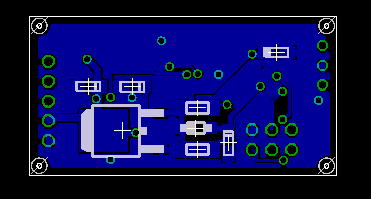 一番外側に白い線を入れたのですが(ちょっとWebでは見えづらいですね)、基板サイズ 100mm x 75mm に合わせて引いてみました。 両面基板作りなので、表裏の位置あわせが重要になるので、ガイドラインをいれてみた、というところです。