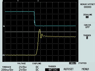 | パルス立ち上がり(エミッタフォロア回路) 特に波形としては良好(分解能以下)。 |